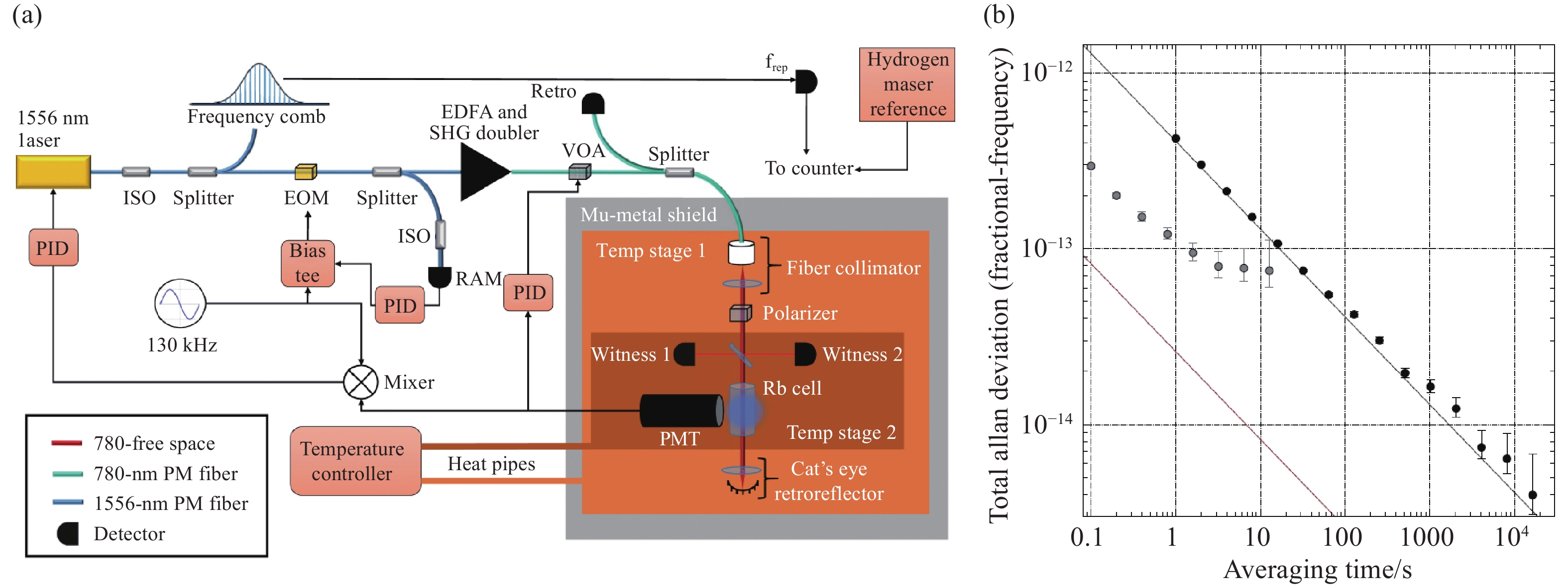 为实现高精度温度传感,本文提出了一种基于高品质因子薄膜铌酸锂微环谐振器与微波光子读取技术的温度传感器。该系统中,薄膜铌酸锂微环谐振器(线宽为2.87 pm,Q值高达105)同时作为温度感知单元和微波光子滤波器的核心处理部件,利用热光效应将温度变化转换为光学谐振波长偏移,并创新性地借助微波光子技术将其线性映射为微波通带频率变化,采用矢量网络分析仪对微波频率响应进行精确探测,通过高精度频率响应变化实现温度测量,最终建立了温度与频率偏移量之间的定量关系模型。与传统直接检测光学波长变化的方法相比,微波光子学读取技术通过将微小的光学谐振波长偏移量线性地转换为微波通带中心频率的变化,突破了光谱仪固有的波长检测分辨率限制。实验结果表明,传感器灵敏度达27 MHz/°C,分辨率可达0.002 °C,在0.01 °C实验温度变化条件下,保持良好的线性响应。本研究有效解决了传统光学测温中灵敏度与分辨率之间的权衡问题,为片上集成高精度温度传感提供了新方案。