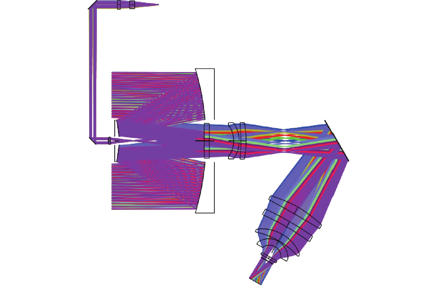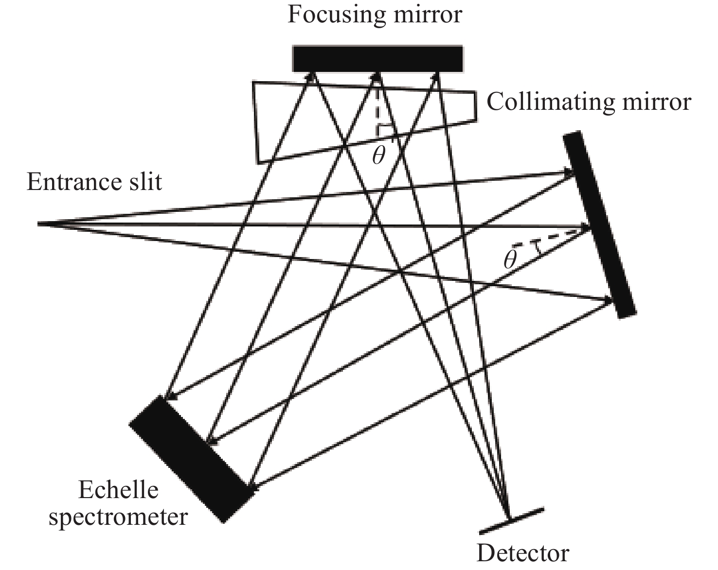 针对传统中阶梯光栅光谱仪高分辨率与微型化难以兼容的技术难题,本文提出了一种紧凑型中阶梯光栅光谱仪设计方法。该设计基于交叉Czerny-Turner型光路结构,采用透射棱镜作为交叉色散元件,通过正交色散分离不同级次光谱的同时结合反向离轴抛物面聚焦镜消除棱镜引入的像差,以实现空间布局小型化。本文对中阶梯光栅及色散棱镜参数进行设计建模,并由光程像差理论分析了聚焦光路的像差特性。仿真结果表明,抛物面-棱镜型中阶梯光栅光谱仪光谱范围为450~650 nm,数值孔径为0.05,分辨率可达0.06 nm,并且在公差范围合理情况下,系统体积仅有80 mm×44 mm×18 mm。基本能够满足便携式、高精度光谱检测的使用要求。