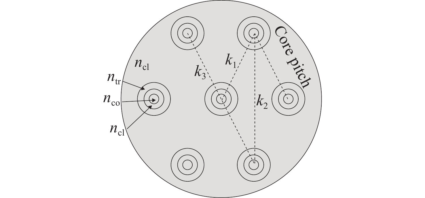 为实现光纤结构参数的全面、高效及多目标精确优化,并进一步提升光通信系统的传输容量,本文引入粒子群优化算法(PSO)代替传统经验设计或局部扫描方法,设计一种基于沟槽辅助结构的同质弱耦合七芯光纤。在建立一个包含色散、截止波长、有效模场面积和涂层损耗等约束条件的多目标适应度函数的基础上,利用粒子群优化算法进行全局搜索,在标准尺寸约束下精确确定光纤的最佳结构参数。仿真结果表明:在光纤纤芯间距为45 μm时,优化后的光纤在